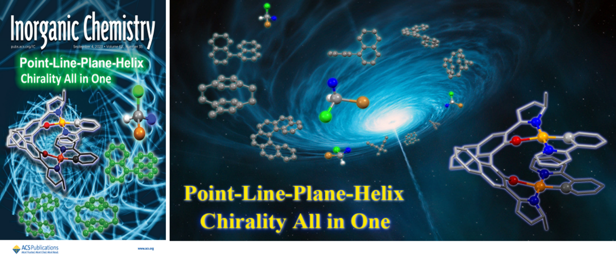 1. W. Y. Yun, L. Qu, B. Zhang, Q. P. Yang, J. T. Song, X. G. Zhou, H. F. Xiang,* ““Point-line-plane-helix” binuclear platinum(II) complexes: metal-induced chirality, chirality self-sorting, and chiroptical properties”, Inorg. Chem. 2023, 62, 14152 (封面).