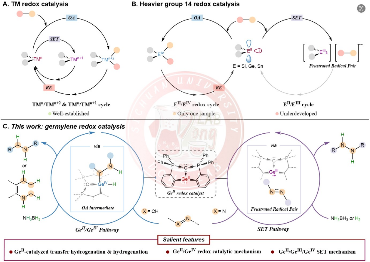 This study was published in Journal of the American Chemical Society (//doi.org/10.1021/jacs.5c12407) entitled “Germanium-Mediated Catalysis via Ge(II)/Ge(III)/Ge(IV) or Ge(II)/Ge(IV) Redox Cycling”. Prof. Zhaowen Dong is the corresponding author of the paper, and Ph.D. student Yihan Zhou, Zhuchunguang Liu and Master’s student Huan Mu are the co-first authors. This work was financially supported by the National Natural Science Foundation of China, National Key R&D Program of China, and Natural Science Foundation of Sichuan, China and the Fundamental Research Funds for the Central Universities.