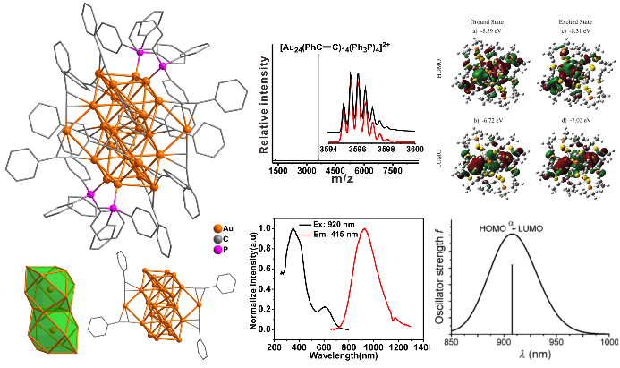 6. Xian-Kai Wan, Wen-Wu Xu, Shang-Fu Yuan, Yi Gao*, Xiao-Cheng Zeng, and Quan-Ming Wang*. Near Infrared Emissive Alkynyl-Protected Au24 Nanocluster, Angew. Chem. Int. Ed. 2015 54, 9683-968
