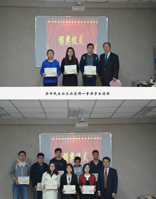 设立奖学金,帮助更多的优秀学生。刘英进总经理首先表达了对获奖同学的祝贺,介绍了MORESCO公司近年的发展情况,并欢迎同学们去MORESCO公司参观、工作。随后,王智猛书记宣布获奖名单,赤田民生社长,大村洋一董事长、刘英进总经理分别为获得一、二、三等奖的学生颁发荣誉证书。