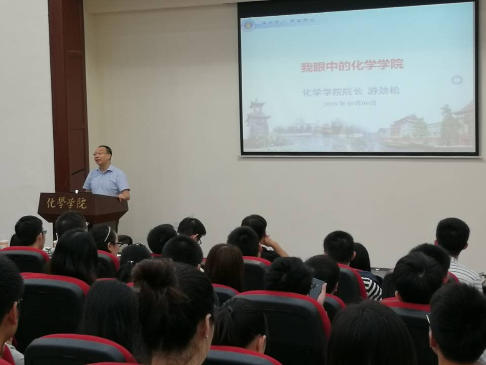 2018年9月6日,上午9:30,体育网足球即时比分 院长游劲松教授于化学馆321面向2015级全体本科生开展了题为“我眼中的体育网足球即时比分 ”讲座。