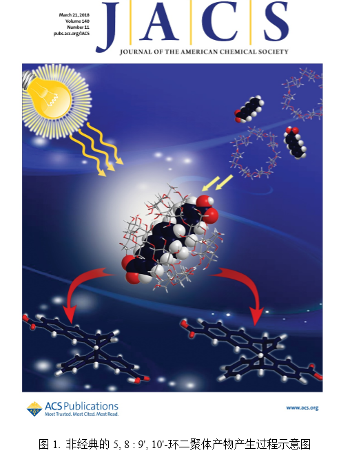 杨成教授、伍晚花副教授课题组与日本Inoue教授合作,成功地将所合成的b-环糊精(b-CD)衍生物用于控制蒽酸的光二聚反应,利用b-CD衍生物与AC形成的2:2高阶复合物,激活蒽酸光二聚反应的非传统路径进而获得了非经典的光二聚产物。该结果发表在国际顶级期刊《Journal of the American Chemical Society》(影响因子13.9)上,并被选为内封面文章。博士研究生韦雪琴为该论文第一作者。