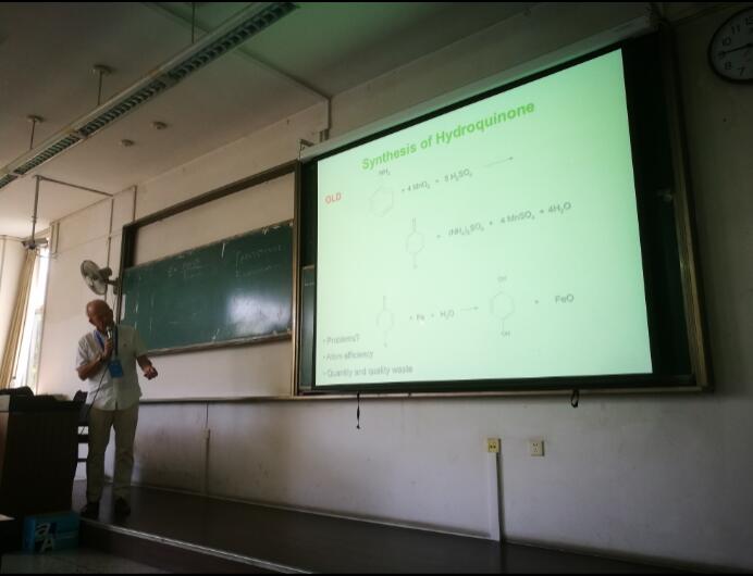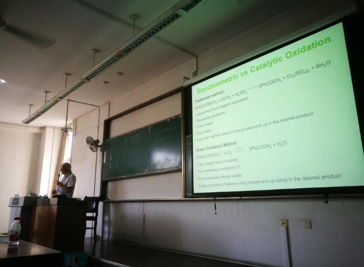 邀请,2017年07月10日,外籍教授James Hanley Clark在四川大学江安校区基础教学楼B座B207做了精彩的授课。第一节课首先是对英国约克镇以及约克大学的介绍:Clark教授首先对绿色化学中心进行了详细介绍:这是一个历史悠久的实验机构,算是绿色化学这门新兴学科发源地了。作为国际知名杂志Green Chemistry(绿色化学)的创刊人之一,Clark教授也算是绿色化学学科的带头人,在该研究方向有着很大的影响力;他对绿色化学的各个分支都有着独到的认识,尤其是近年来十分热门的生物质转化领域。如何有效的利用原生生物质制备生物油是发展可持续能源的必然方向,而Clark教授还特别关注于真实的工业化应用,这是生物油替代化石能源的关键一步。