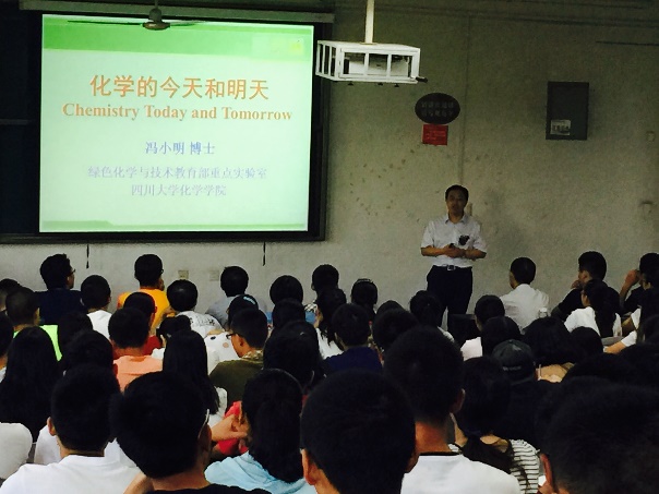 冯院士首先通过许多具体事实数据和自己的亲身经历为同学们讲解了化学在生产生活中的重要性,深入浅出,娓娓道来。接下来,冯院士介绍了他所专攻十余年的研究领域——手性化学。他幽默风趣的介绍使同学们深深地感到了化学和手性的魅力。最后,冯院士语重心长地对同学们提出了刻苦学习以外的要求,即做人的准则。他认为大学四年将极大程度地决定人的一生,他希望同学们能够严肃认真对待学习生活,严格要求自己,实现自己由高中到大学如蛹化蝶的作为成人的蜕变。冯院士引用一些时事,要求同学们肩负起祖国赋予我们的历史责任,勉励同学们把创新成为一种素质,为人类的发展领跑。