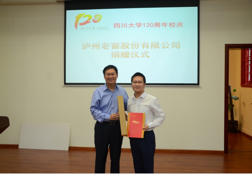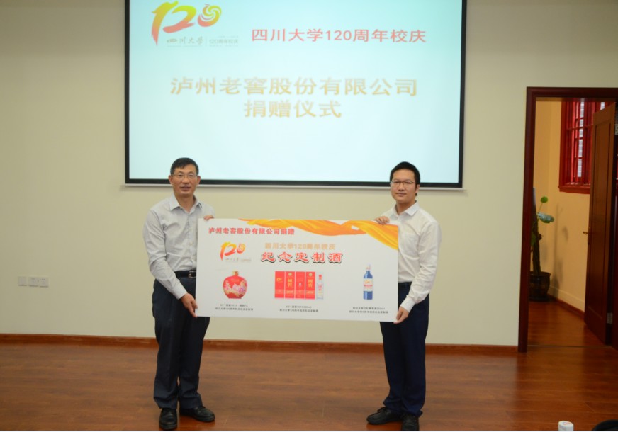 2016年9月27日上午,四川大学120周年校庆泸州老窖股份有限公司捐赠仪式在四川大学望江校区化学馆321报告厅举行。2008级优秀校友、泸州老窖贵宾服务有限公司总经理助理曾程,体育网足球即时比分-球琛足球即时比分