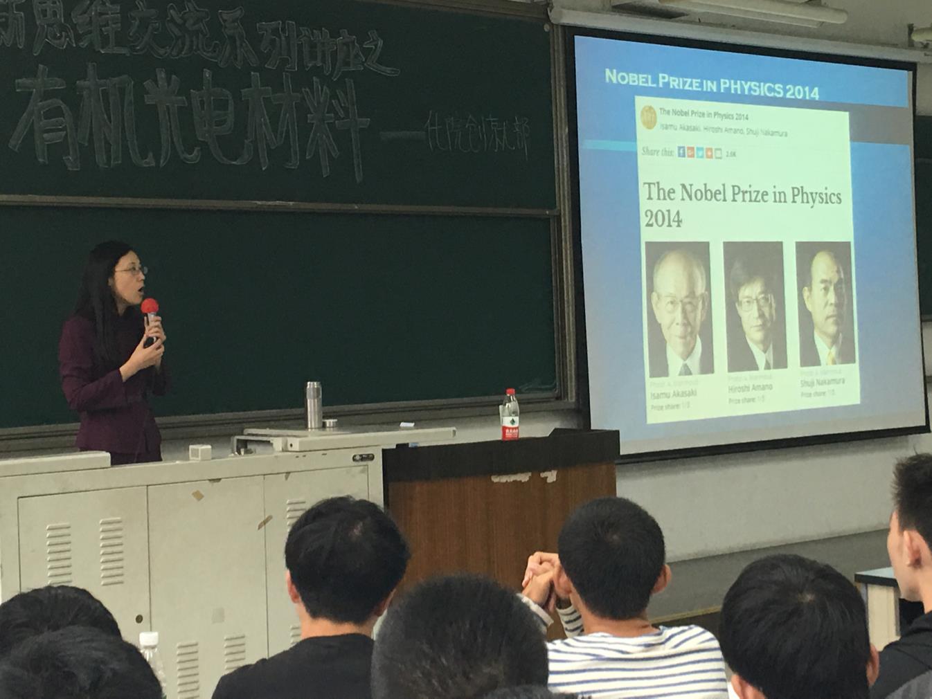 首先,卢老师以从容而舒缓的语言,带领同学们走进了有机光电功能材料的大门,使同学们了解到了光电功能材料对现代生活的改变,也找到了从事此类研究的创业就业方向与未来。接着,卢老师从蓝光发光二极管讲起,讲述了有机材料带来的一次生活革新,随后介绍了有机光电材料在各大领域的运用,在生活方面,OLED显示装置大大提高了人们的生活质量;在科技方面,多种新型材料的发现掀起了科技领域的一次次浪潮。卢老师用实例告诉我们:我们今天如此便捷美好的生活,离不开有机光电材料研究,有机光电材料研究有宽阔的前景。之后,卢老师讲述了OLED之父邓青云的故事,告诉同学们“认真、勤奋、创新”对一个科研工作者的重要性,而那一个个创造性的发明,都是在日日夜夜的努力中诞生,我们想要创出这样的一番成就,也离不开这样的努力。