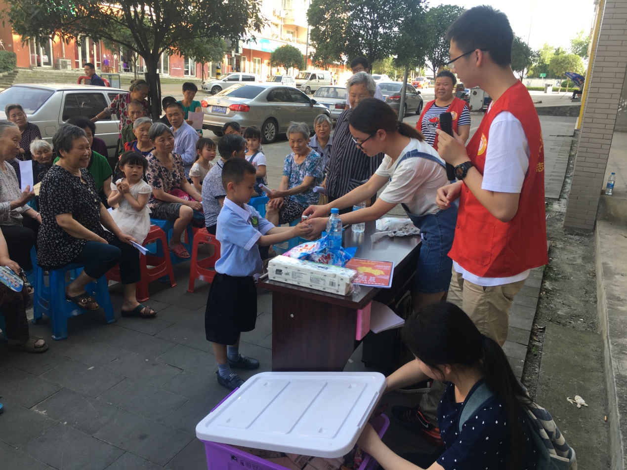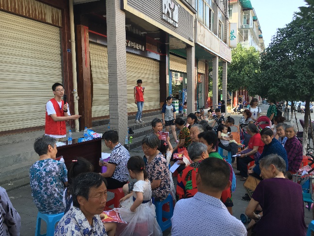 活动开始前由志愿者们先在八角居社区及社区周边发放宣传单,指引社区居民前来参加活动。下午四点半,宣讲正式开始。在志愿者充满激情的宣讲下,吸引了更多居民前来。宣讲的内容是社会主义核心价值观的来源、对社会的发展、它在以后能起到什么作用以及它与传统中华文化之间的关系。宣讲活动结束后,在志愿者们的带领下,开展了有趣的活动环节,社区居民们积极地参加了游戏活动,活动现场气氛热烈,老人和孩子都参与到活动过程中,其乐融融。