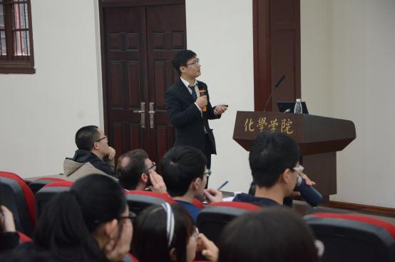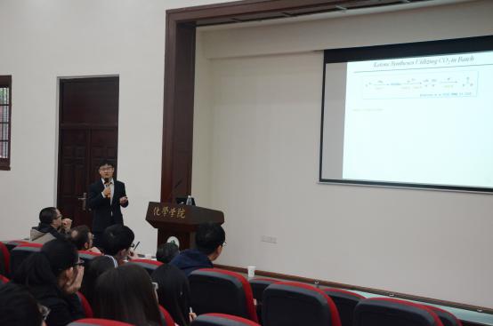 邀请,新加坡国立大学吴杰老师于2016年04月08日访问四川大学并进行学术交流。在化学馆321会议室,吴杰老师做了题为“Continuous-Flow Synthesis as an Emerging Technology in CO2Utilization”的学术报告。他分享了该课题组多年来在连续流合成中利用二氧化碳的一种新兴技术的研究经验和方法,并介绍了近几年在该新兴技术方面的最新研究进展。我们学院院长余孝其教授主持了报告会,Jason J. Chruma、余达刚教授和学生到场听取了报告。此次报告内容新颖,讲解深入浅出,激起了在座老师和同学的浓厚兴趣。报告结束后,吴杰老师与学院部分师生进行了热烈的交流和讨论。