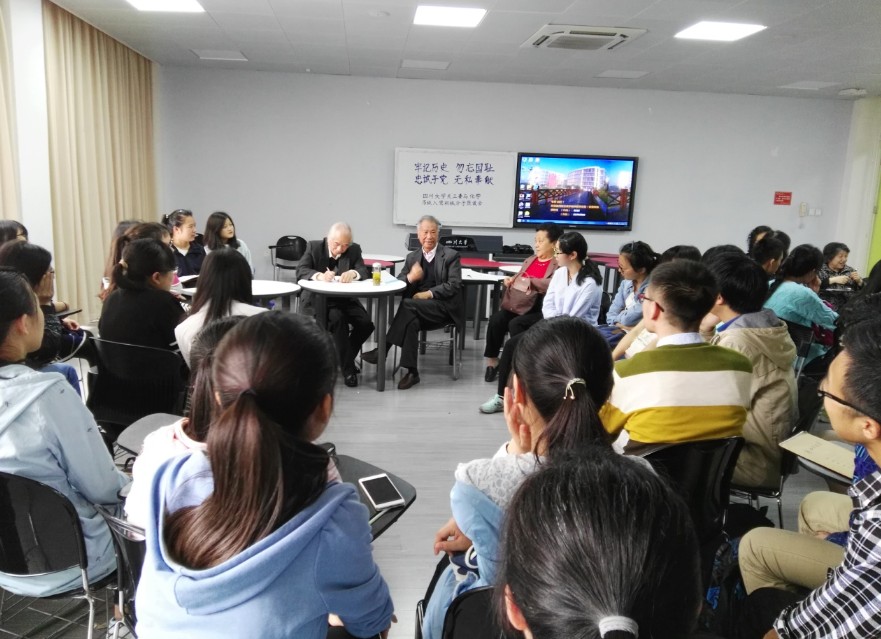首先,四川大学教导员郭老师介绍了本次到场嘉宾。之后,曹素书部长就本次座谈会的意义和目的进行了讲解。其后,老师和同学们围成两个圈,近距离地交流互动。老师们再次进行了自我介绍,并讲了自己的求学、工作、入党经历。他们都是具有几十年党龄的“老”党员,入党时同现在的同学们年龄相仿,正值风华正茂。他们都曾在川大任教,担任辅导员等职务,在为学生服务中践行了自己入党申请书中庄严的承诺。虽然现在退休,仍致力于奉献而乐此不疲,在四川大学关工委担任教导员,专门为同学们排忧解难。