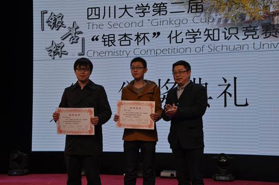 郭勇部长为“银杏杯”化学知识竞赛特等奖获得同学颁奖