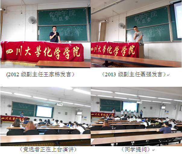 主持人介绍了竞选规则后,2012级副主任王家栋学长讲话,2013级副主任聂强学长讲话。讲话完毕后,精彩激烈的竞选演讲正式开始。由社区委副主任的竞选到部长的竞选,每位同学的演讲都饱含激情,展示了自己的雄心壮志,PPT的制作让在场的学长学姐及同学感受了选手们的用心,各位选手都对未来的工作进行了设想,各有亮点,分析到位,其中一位竞选者湛玉荣同学更是以一首藏头诗让各位学长学姐记住了自己,而另一位竞选者伍星同学更是以“六颗星”让大家记住了自己。在每位同学演讲结束后的充满紧张气氛的提问环节,副主任及部长们根据大家的工作设想逐步分析,抓住要点提出问题,也向我们展示了社区委在建设过程中对待问题的严谨与全面分析。各位竞选选手展示完毕后,开始了竞选的第二环节,全体竞选者上台,在座的同学有十分钟的提问时间,其他同学与社区委其他干事针对社区委的现状发展问题积极提出问题与见解,丰富了社区委的活动建设。