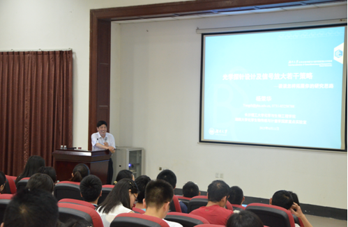 邀请,长沙理工大学杨荣华教授于2015年06月11日访问四川大学并进行学术交流。在化学馆321报告厅,杨荣华教授做了题为“光学探针设计及信号放大若干策略”的学术报告。他介绍了该课题组近年来在光学探针的设计和信号放大等方面的研究进展。余孝其院长主持了报告会,李坤、周翠松、高戈、于珊珊、张骥等研究人员到场听取了报告。杨教授报告内容新颖,讲解深入浅出,激起了在座老师和同学的浓厚兴趣。报告结束后,杨教授与学院部分师生进行了交流和讨论。