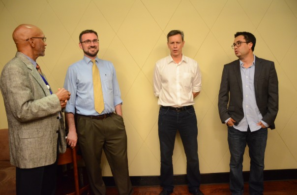 在见面会上,余孝其院长首先对本次来校授课的外籍教授进行了介绍,并对他们的到来表示热忱欢迎,与教授们交流了此次课程周的授课和学生参与情况。外籍教授称赞了四川大学的国际课程周,认为其独具特色,为中西方学术文化交流提供了广阔平台,也让他们得以与来自世界各地的同行进行交流,建立联系。同时,对学校及学院的周到安排、相关工作人员及研究生助教的得力协助表示感谢。来自加州大学圣巴巴拉分校的Bazan教授对选课学生的专业知识及理解能力表示赞赏,并希望这些学生将来有机会可以申请赴美深造;来自乔治亚州立大学的三位外教询问了下一年国际课程周的信息,并希望能够有机会再次“回来”。中外教授们还就各自研究领域进行了交流,并探讨了学术交流及国际合作的可能性。