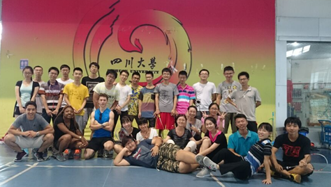 首届“国际交流营羽毛球比赛”在四川大学江安校区体育馆成功举行。此次羽毛球比赛共有5支队伍,为团体赛,分别有男单、男双和女双,每场比赛采取三局两胜制,按照每场得分计算小分,得分最高的两支队伍进入决赛。