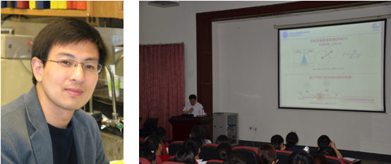 邀请,中科院长春应化所孙旭平教授于2015年04月28日访问四川大学并进行学术交流。在化学馆321报告厅,孙旭平教授做了题为“功能材料的表界面调控及分析传感应用”的学术报告。他介绍了该课题组近年来在功能材料的表界面设计与调控及其分析传感应用等方面的研究进展,主要包括: (1)富共轭π电子纳米结构作为荧光淬灭剂用于DNA检测; (2)含杂原子荧光纳米碳用于Cu2+检测; (3)无表面活性剂过渡金属磷化物纳米结构及阵列的可控制备及其在电化学制氢、荧光DNA检测中的应用。余孝其院长主持了报告会,蒲雪梅、周翠松、郑成斌、于珊珊、张骥等老师到场听取了报告。孙教授报告内容新颖,讲解深入浅出,激起了在座老师和同学的浓厚兴趣。报告结束后,孙教授与学院部分师生进行了交流和讨论。