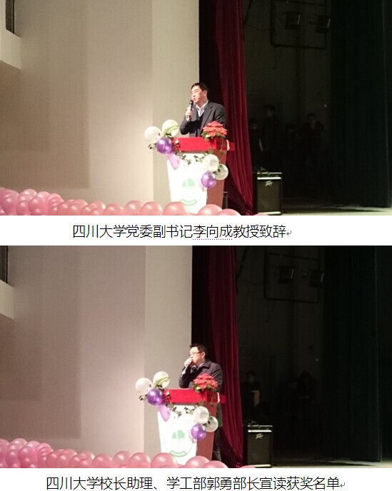 2014年12月12日晚19:00,四川大学第一届“银杏杯”化学知识竞赛颁奖典礼在江安校区艺术学院小剧场隆重举行。此次晚会邀请到四川大学党委副书记李向成教授、四川大学校长助理、学工部部长郭勇教授、四川大学教务处处长张红伟教授、校团委徐海鑫书记、学工部周志文副部长、招生就业处金永东处长、校教导员郭明秀老师、体育网足球即时比分