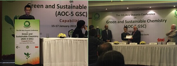 第五届亚洲大洋洲绿色与可持续发展化学大会(The 5th Asia-Oceania Conference on Green and Sustainable Chemistry)于2015年1月15-17日在印度首都新德里召开。本次会议参会人数约250人,其中邀请到了包括Prof. Paul T. Anastas (Yale University, USA), Prof. James Clark (University of York, UK), Dr. John C. Warner (Warner Babcock Institute for Green Chemistry, USA), Dr. David Constable (ACS-GSI, USA)等几十位国际绿色化学领域知名科学家,以及来自11个国家和地区的代表。体育网足球即时比分-球琛足球即时比分