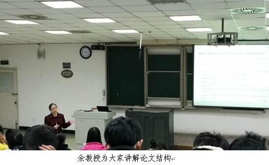 在张学长介绍完量子点,余教授表示,学会如何写论文是非常重要的。她向大家介绍了论文的结构等。