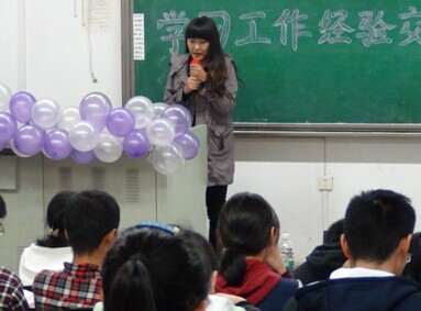 新老生学习工作经验交流会在江安校区一教B座505教室正式召开。2011级的五位优秀毕业生代表在这里为新生们做了精彩的讲演,并解决新生们的困惑,帮助新生明确了自己的人生目标,为新生未来的发展打下坚实的基础。