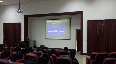 邀请,香港理工大学黄国贤教授于2014年10月17日访问四川大学并进行学术交流。在化学馆321报告厅,黄忆宁教授做了题为“Biosensing with novel fluorescent agents”的学术报告。他介绍了该课题组近几年利用各种新颖的荧光剂应用在生物传感器方面的最新研究进展。余孝其院长主持了报告会,李坤等研究人员和学生到场听取了报告。黄教授报告内容新颖,讲解深入浅出,激起了在座老师和同学的浓厚兴趣。报告结束后,黄教授与学院部分师生进行了交流和讨论。