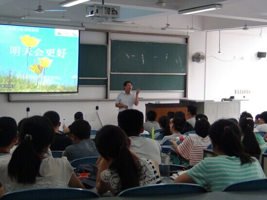 党委书记王智猛老师在江安校区综合楼C座106教室为2014级的同学们带来职业生涯规划讲座。到场的老师还有四川大学教导员郭明秀老师和2014级辅导员张愉老师。