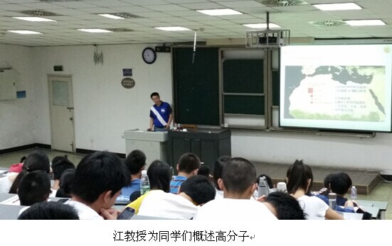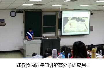 讲座最后,江教授又向同学们介绍了他们课题组,他们课题组研究的是功能高分子,表示非常欢迎同学们参观他的实验室,有什么不懂的问题也可以去询问他。