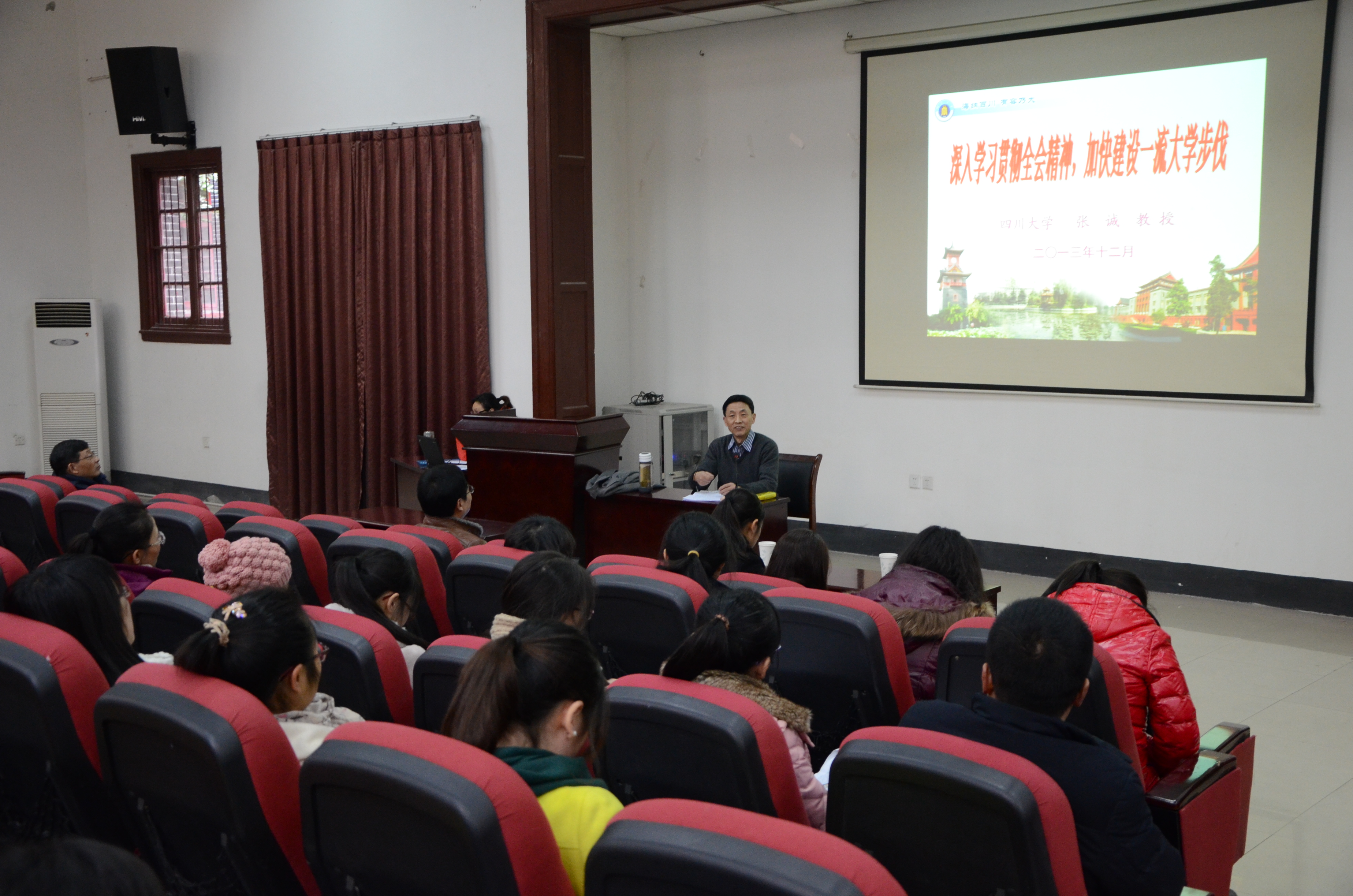 在化学馆学术报告厅举行党的十八届三中全会精神宣讲报告会,特邀学校宣讲团成员、川大党校张诚教授主讲。体育网足球即时比分