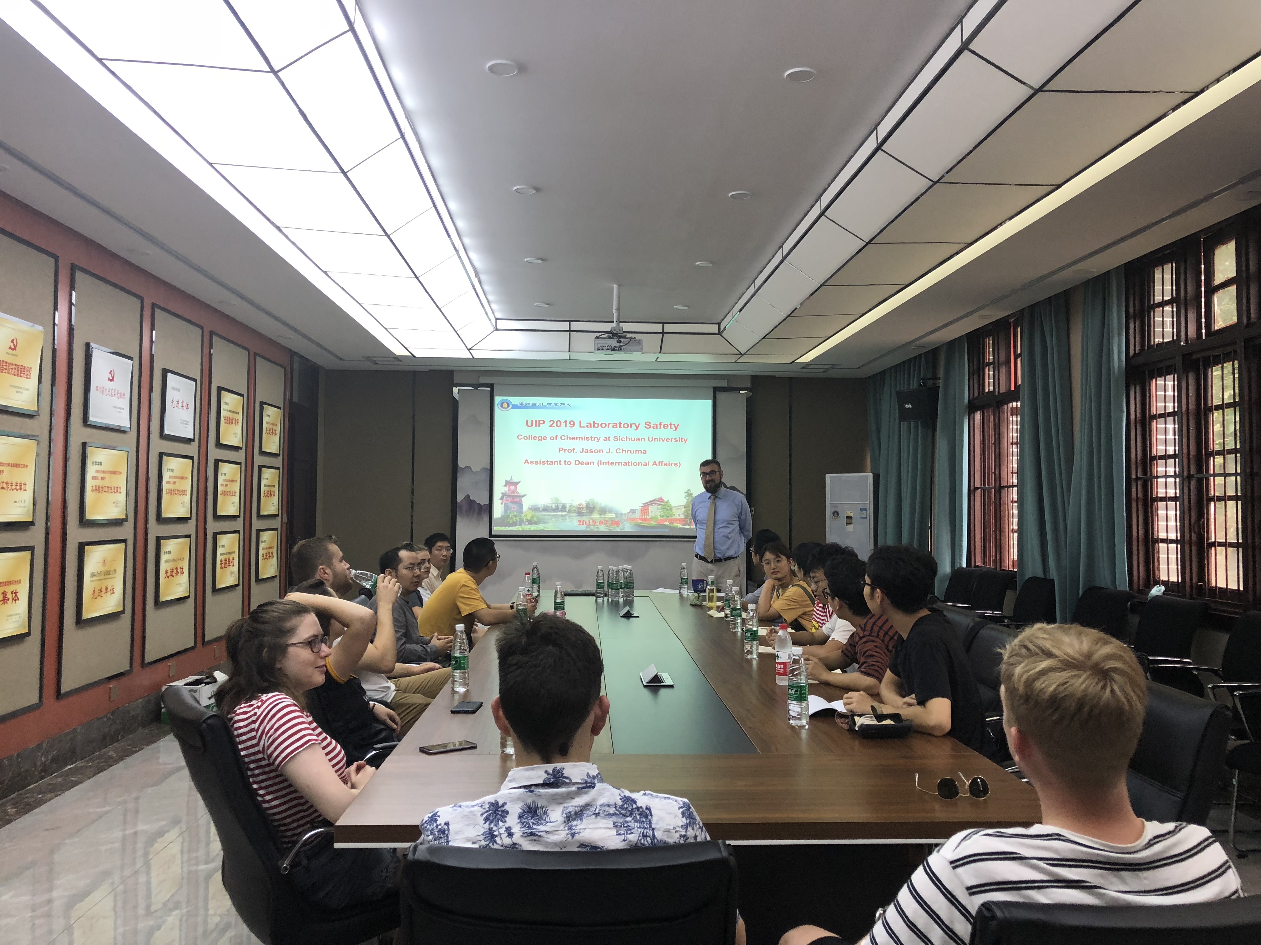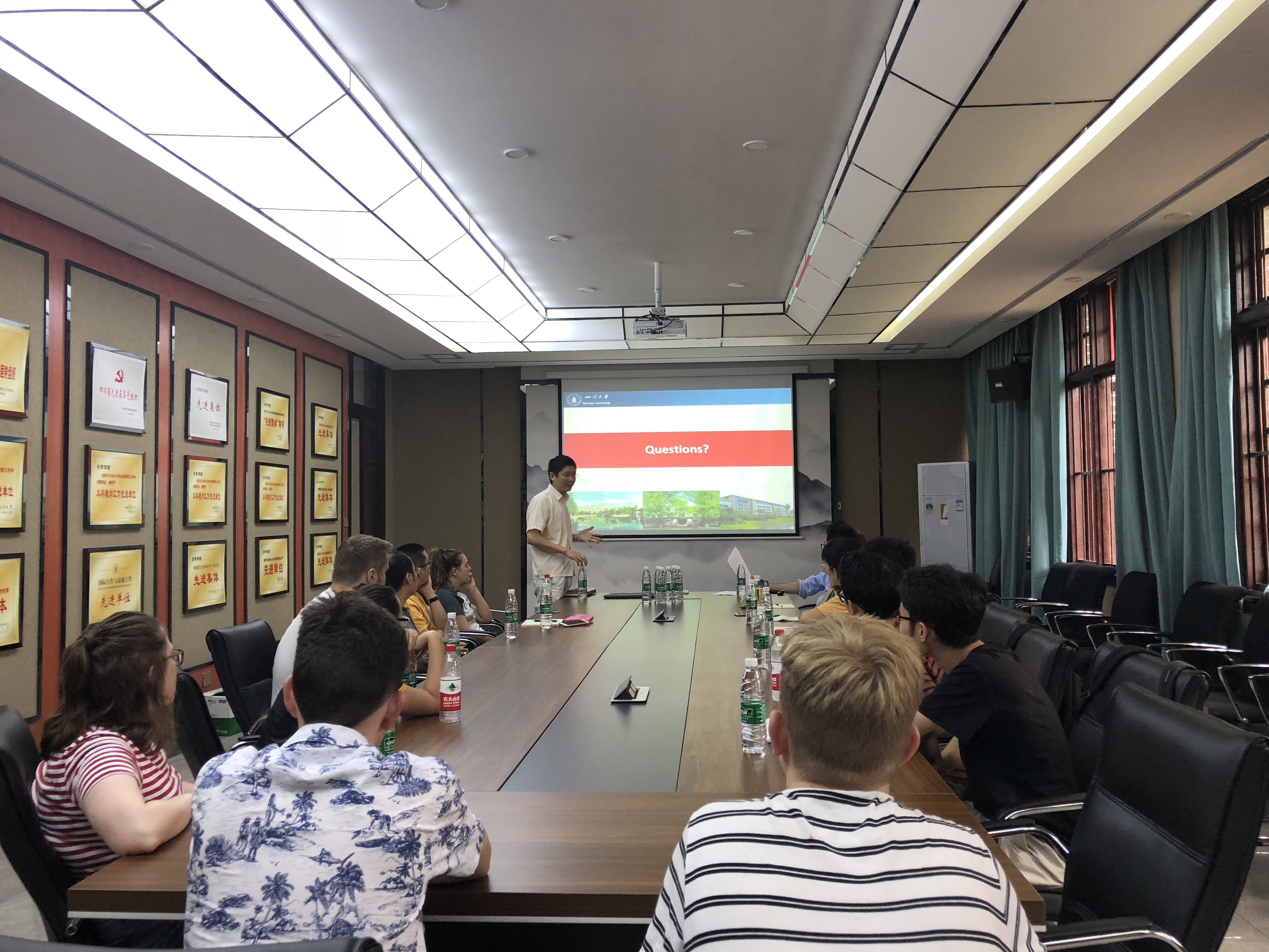 首先,Jason Chruma教授向交流营同学介绍了化学实验室的安全守则,包括平时进入实验室的着装、实验规范操作及常见安全问题,并强调实验期间一定要听从导师的安排,不得擅自行动,并回答了同学提出有关实验室安全的一些问题。接着三位导师分别简要介绍各自实验室的基本情况及研究方向,并与各自实验小组的中外学生互动。最后,中外学生在各自导师的带领下进入实验室,开启为期一周的化学科研之旅。