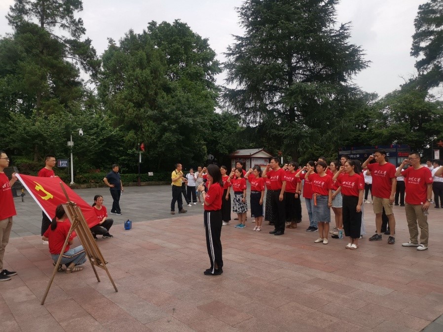 在红军山上,实践团举行了祭奠革命英烈活动,全体成员肃立,面向革命烈士纪念塔进行默哀,默默缅怀逝去的英魂。随后,向革命烈士敬献花篮,瞻仰革命烈士纪念碑,深切缅怀为党的事业和人民利益英勇献身的革命烈士;重温入党誓词,进一步坚定入党初心。