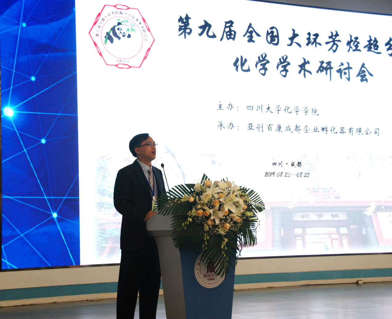 主办。大会汇聚了大环芳烃研究领域的专家和学者,共同探讨大环超分子化学的最新研究进展。来自清华大学、北京师范大学、中国科学院化学所、国家纳米科学中心、复旦大学、上海交通大学、上海有机化学研究所、浙江大学、南开大学、天津大学、南京大学、吉林大学、南方科技大学、新加坡纳米生物国家实验室、澳门大学和四川大学等51所学校及中科院的专家学者、师生共300余人参加了开幕式。