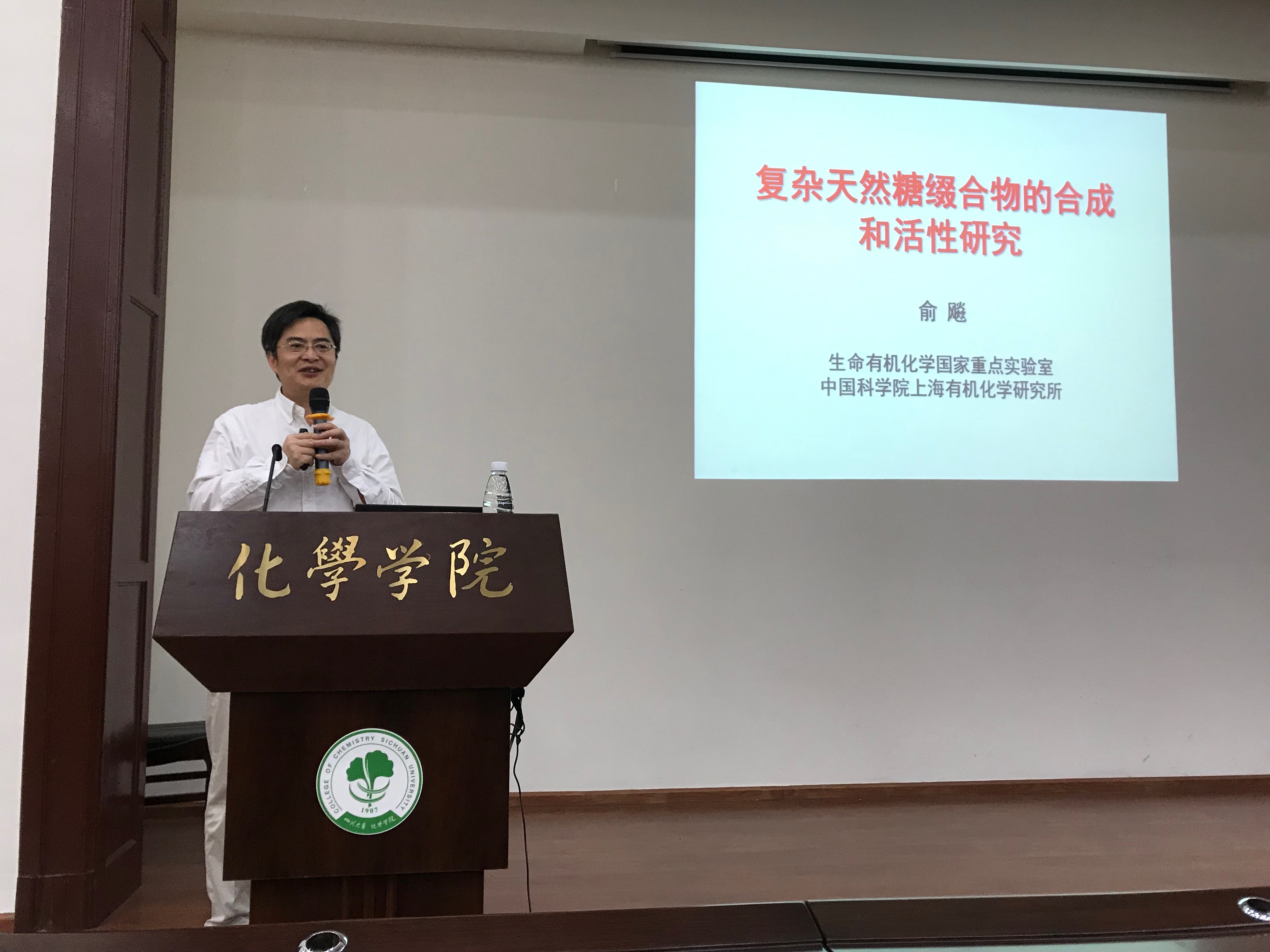 ,并在化学馆321报告厅做了题为“复杂天然糖缀合物的化学生物学研究进展”的学术报告,报告由冯小明院士主持。