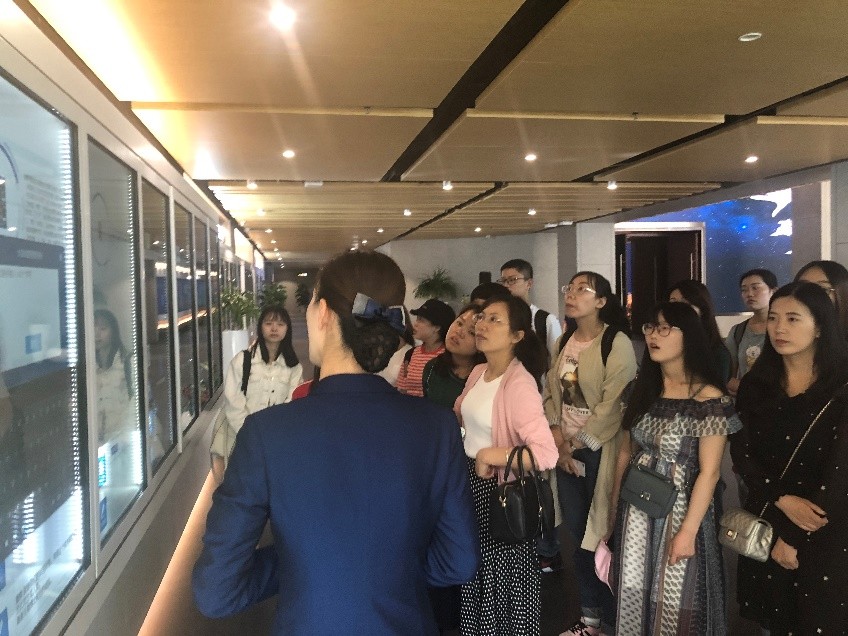 师生在菁蓉国际广场内深入了解大学生创新创业发展状况以及各项政策和服务。同学们在相关负责人的带领下还了解了园区内的公司团队做出的大数据分析状况,通过多组图形化数据模型的展示,使同学们真正感受到大数据时代的优势和潜力。