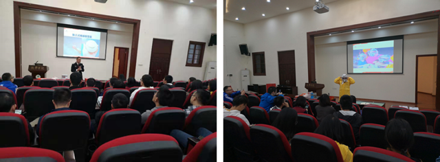 实际情况,生动地介绍了消防柜内呼吸器、灭火毯、逃生绳、应急手电筒等各类消防器材的使用方法、灭火器种类及其操作方法。最后,周教官通过实际案例,介绍了部分消防工作者的代表事迹,全体师生都深受感动,让大家深刻意识到“预防为主,防消结合”正确消防观念的重要性。