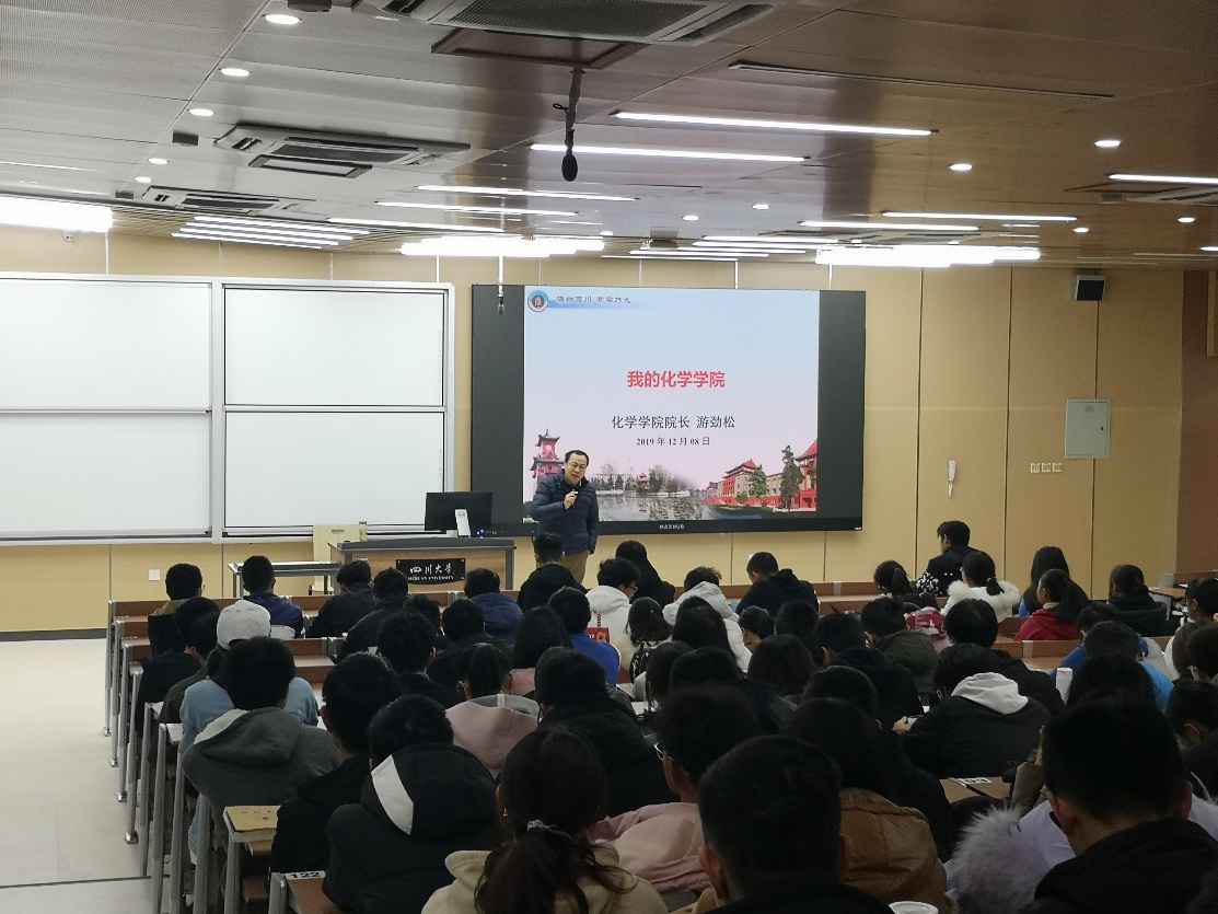112年的发展历程,介绍了学院学科建设情况和办学条件,强调了化学学科在川大“双一流”建设中的重要地位,展望了未来化学发展的美好前景。游院长着重介绍了学院对学生发展的重视,从培养目标与定位,本科生培养模式,构建“多位一体”的学生思想政治教育体系和学生资助体系,基于科研引导的创新人才培养体系和化学类拔尖人才的国际化培养模式等方面,讲述了体育网足球即时比分