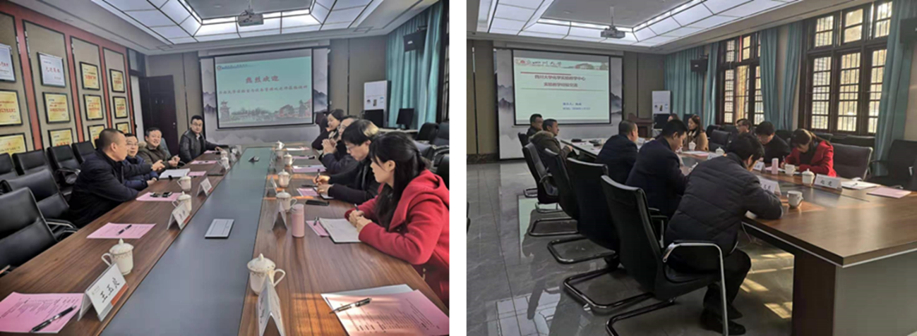 院长游劲松代表学院对西南大学设备处老师的来访表示了欢迎,化学实验教学中心主任杨成介绍了化学实验教学中心的基本情况。随后,双方就本科基础实验教学中心运行管理机制、人员、经费和场地管理模式、中心课程量安排、教师工作量以及场地安排情况等3大项7个问题进行了深入交流和讨论。四川大学设备处副处长夏建钢、副处长金永东及体育网足球即时比分