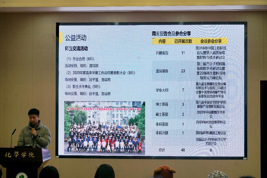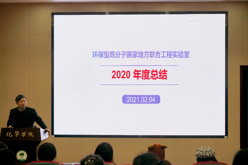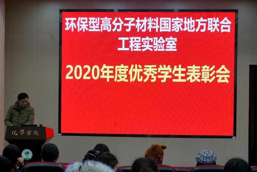环保型高分子材料国家地方联合工程实验室在化学馆321报告厅举行了2020年度工作总结与奖励大会。会议由实验室党支部书记汪秀丽教授主持,实验室全体师生参加了此次大会。