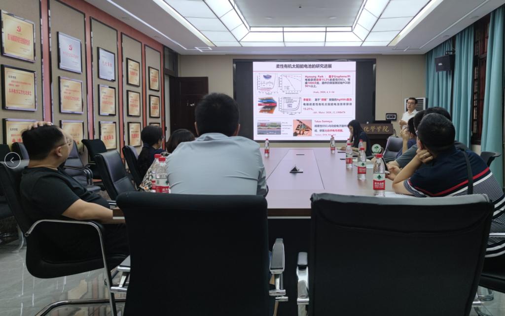 在报告中,葛子义研究员结合自己的研究成果,详细讲述了有机光伏领域界面材料、活性层材料以及柔性器件方面的发展。他们创新性开发了一类湿法加工的低价非共轭小分子电解质作为OSCs的界面材料,突破了单结富勒烯有机太阳能电池10%效率瓶颈;制备了新型活性层材料,分别获得了18.5%、15.9%的刚性、柔性有机太阳电池,是目前报道的最高效率之一。葛子义研究员的报告内容丰富、演讲精彩,与在场师生进行了多方面交流,获得阵阵掌声和一致好评。
