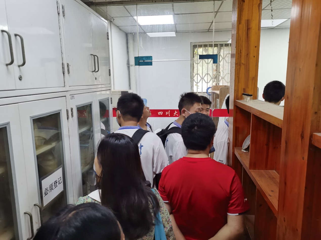 参观结束后,同学们基于目前的化学知识和概念,对实验室各种仪器和化学反应进行提问和讨论,实验室老师一一耐心解答,鼓励大家在高中阶段认真学习化学基础知识,为进入大学学习打下基础,也欢迎大家今后再次来实验室参观。本次参观化学实验室的校园体验日活动增进了七中同学对川大化学学科的了解,有效推动了本科招生宣传工作的开展。