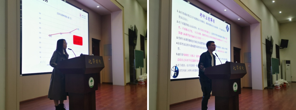2019级研究生李梦晨分享了近几年的考研形势,分析了考研难点重点的复习方法,提示同学们在最后冲刺期阶段的复习中要有策略上的调整。最后,谢均书记引导同学们在接下来的冲刺备考中继续努力,多练题,调整好心态,同时要注意身体健康,劳逸结合,鼓励同学们坚持到底,不负自己的辛勤付出!老师们还为考研学生发放了学院精心准备的考研加油包,祝愿同学们考研成功!