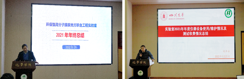 总经费的比例约50%,为学院经费首次破亿元做出了重要的贡献。此外发表川大B类及以上成果论文33篇,获授权发明专利18项,制订国家标准8项。我室还成功举办了第四届“高分子材料循环与升级回收论坛”,年轻教师赵海波教授和刘博文特聘研究员应邀在国际阻燃届最有影响的阻燃会议FRPM2021分别做Plenary和Keynote邀请报告,成为该国际会议举办近40年来最年轻的同类特邀报告的报告人。王玉忠院士特别指出,这些成果与荣誉皆源于实验室每一位老师与学生的共同努力,并鼓励师生们在新的一年继续努力、再创佳绩。