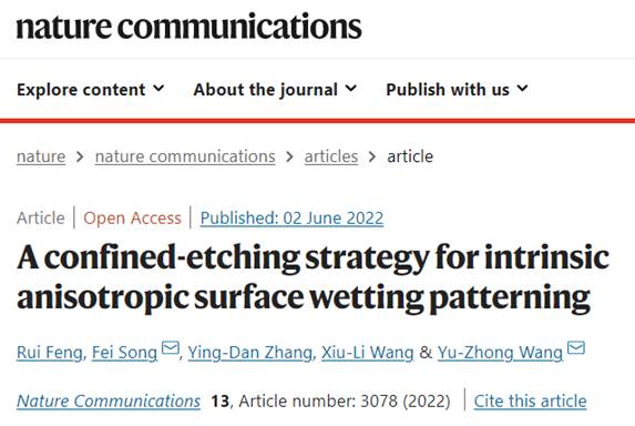 王玉忠院士和宋飞教授在Nature Communications上发表题为“A Confined-Etching Strategy for Intrinsic Anisotropic Surface Wetting Patterning”的研究论文(Nat. Commun. 2022, 13, 3078)。四川大学为论文唯一署名单位,体育网足球即时比分