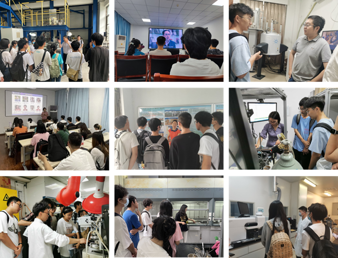 6月10日中午13:30,2021级、2022级的同学们统一从江安校区青春广场出发,乘车前往望江校区化学馆。同学们根据前期自主报名的情况,分批次参观了1~3个有意向了解的课题组。各课题组老师对同学们的到来表示热烈欢迎,热情地为大家讲解课题组的研究方向,带领同学们走进专业实验室、了解实验室的先进仪器设备,并对同学们进行了学业指导。同时,课题组邀请了本组的优秀硕博士引导参观、示范专业操作,并与同学们进行经验交流分享。
