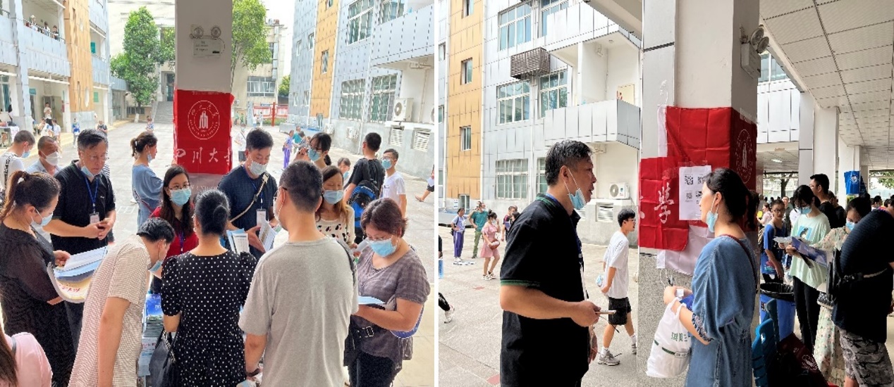 为进一步提升我校在川生源质量,学院在四川省高考成绩公布之后,积极与对口中学绵阳南山中学、绵阳南山中学实验学校联络,于6月24日前往开展招生咨询工作,解答考生及家长对报考川大政策、专业、学习生活等多方面问题,吸引优秀生源报考四川大学。同时,学院招生工作组老师分赴重庆、南充以及川大校内各招生点进行招生咨询。