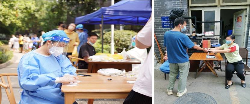 学院志愿者服务作用发挥不仅仅在校园里。在校外,也有他们奋战在抗疫情一线的身影。李颖老师参与了桂溪街道交子社区组织的志愿者抗疫服务工作,与众多社区志愿者一起负责核酸检测健康码录入,核酸队伍次序维护及相关服务工作。李珍焱老师在居住小区参与了门口查验进出凭证,测量体温,查验健康码和信息录入的工作。9月8日,林之恩老师所居住的小区出现确诊病例,小区被划为高风险区。他第一时间报名参加小区防疫志愿工作。