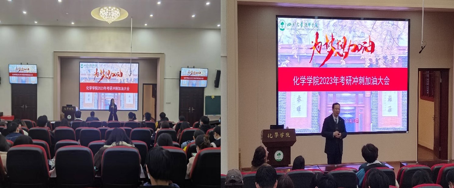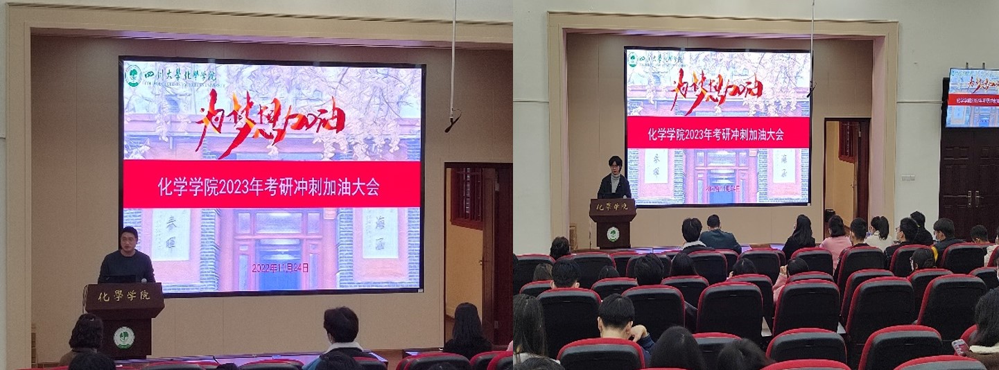 2023届考研冲刺加油会。学院党委书记谢均、院长游劲松、党委副书记肖波、全体辅导员、学院朋辈帮扶团和2023届全体考研同学参加了本次会议。