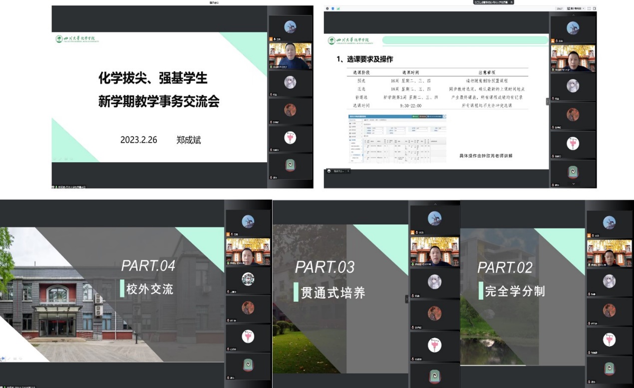 组织了化学专业拔尖、强基计划学生培养工作线上宣讲会,由教学副院长郑成斌教授主持,教务办公室钟欣芮、苏燕老师参会答疑。本次会议向学生介绍了选课、特殊选课流程,解读了完全学分制实施管理办法。让学生充分了解对应培养方案要求,并可以根据个人专业兴趣特长、学业水平、发展潜质等自主选择所需课程。同时,郑院长详细阐述了贯通式培养要求,以及学院拔尖、强基计划学生国内外交流的资助政策。今年学院将全面重启拔尖学生校外交流学习,特别鼓励学生带着科研成果参加国内(境)外举办的化学类高水平学术会议。