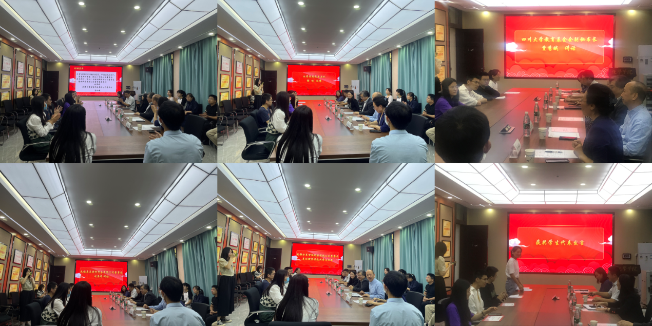 近年来的校友工作表示了肯定,向MORESCO有限公司对四川大学教育事业发展的支持表达感谢,并鼓励同学们将自己的人生抱负与国家、社会的发展和需要紧密结合起来,学习领悟刘总和夏总身上的吃苦耐劳和感恩之心,在实践中锻炼成才。