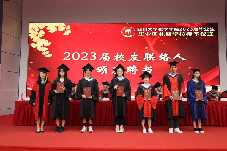 谢均书记为2023届六位毕业生联络人颁发聘任证书,希望他们作为强化校友联络的纽带,在毕业之后,为校友和学校做好服务,争做母校最亮丽的名片。