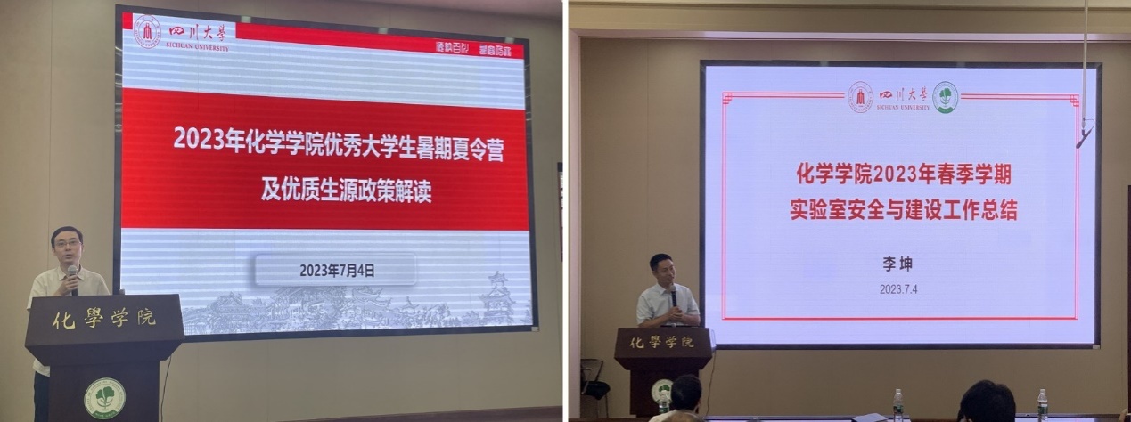 马利建副院长就研究生培养、学院科研工作、暑期夏令营和导师动态上岗招生资格审定政策等进行了汇报和解读,对暑期研究生管理提出要求。李坤副院长就上半年实验室安全与建设工作进行总结,对暑期及下学期学院安全稳定工作提出希望和要求。