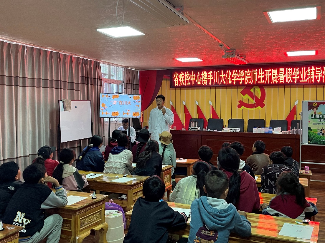团队成员在壤古村、吾伊乡开展多场交流分享和化学科普活动。团队成员通过叙求学之路、论学习方法、展大学生活,激发当地青少年的求学热情,助力当地学生从思想上走出大山。随后,团队成员充分发挥专业特长、展现专业特色,为当地学生展示了多个化学趣味实验,激发当地学生对科学的探索热情,助力当地科学知识普及和普通话推广。